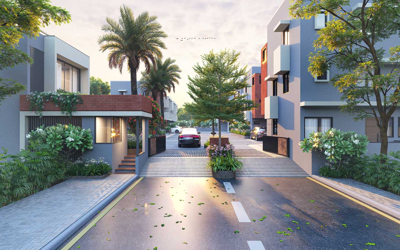 Introducing Happy Sanidhya – a premium collection of 4 BHK bungalows in Kasindra Ahmedabad, designed for families who value space, peace, and elegance.
